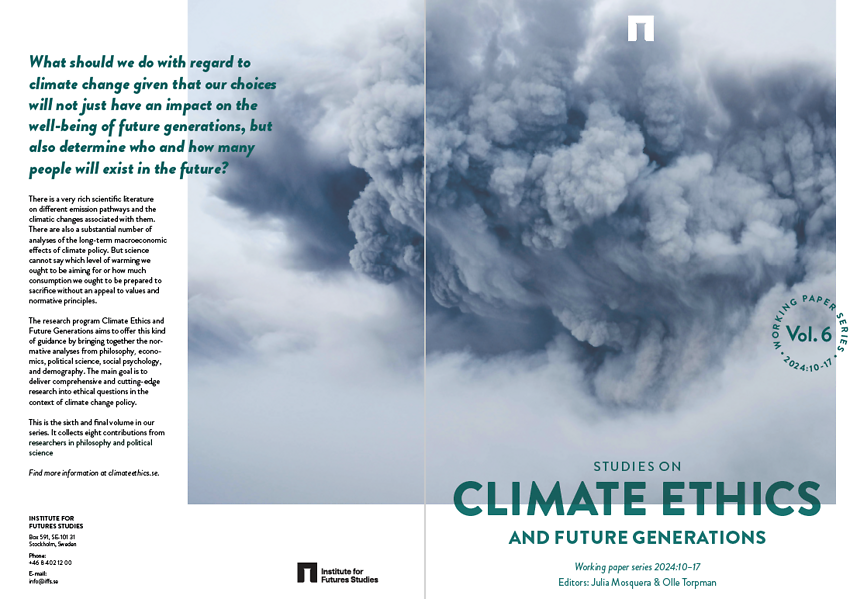 The sixth and final volume of working papers written as part of the Climate Ethics and Future Generations project is now available. This volume is edited by Julia Mosquera and Olle Torpman and distributed by the Institute for Futures Studies.