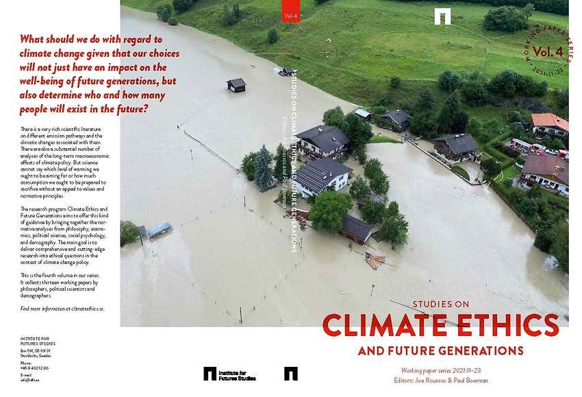 The fourth volume of preprint papers written as part of the Climate Ethics and Future Generations project is now published. The volume is edited by Joe Roussos and Paul Bowman and published by the Institute for Futures Studies.
