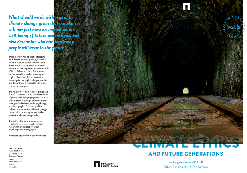 The fifth volume of preprint papers written as part of the Climate Ethics and Future Generations project is now ready. The volume is edited by Tim Cambell and Olle Torpman and published by the Institute for Futures Studies.